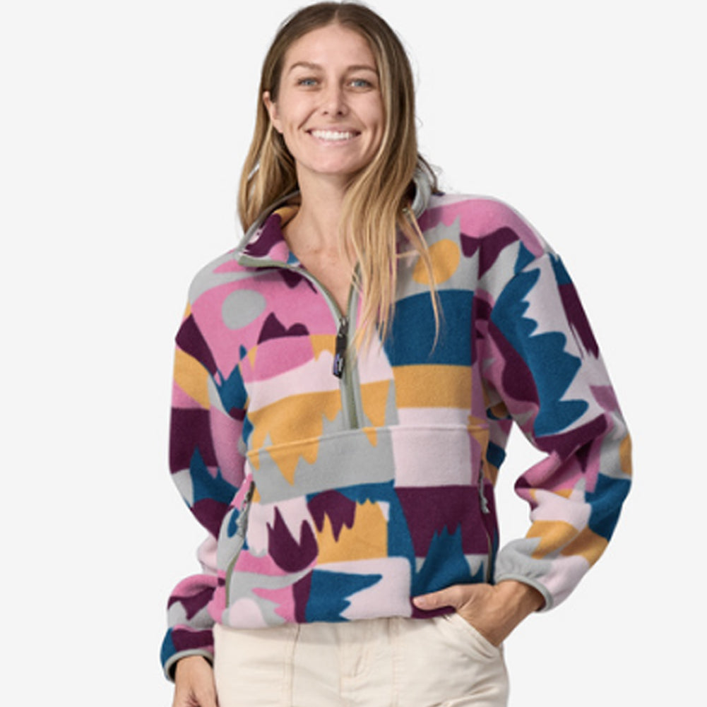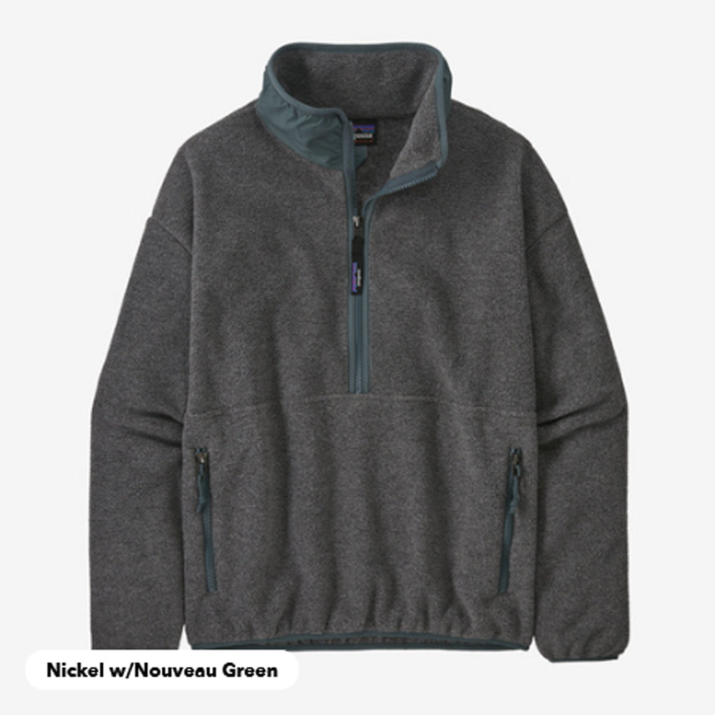 A relaxed, half-zip marsupial fleece made with warm Synchilla® 95-100% recycled polyester double-sided fleece. Made in a Fair Trade Certified™ factory.