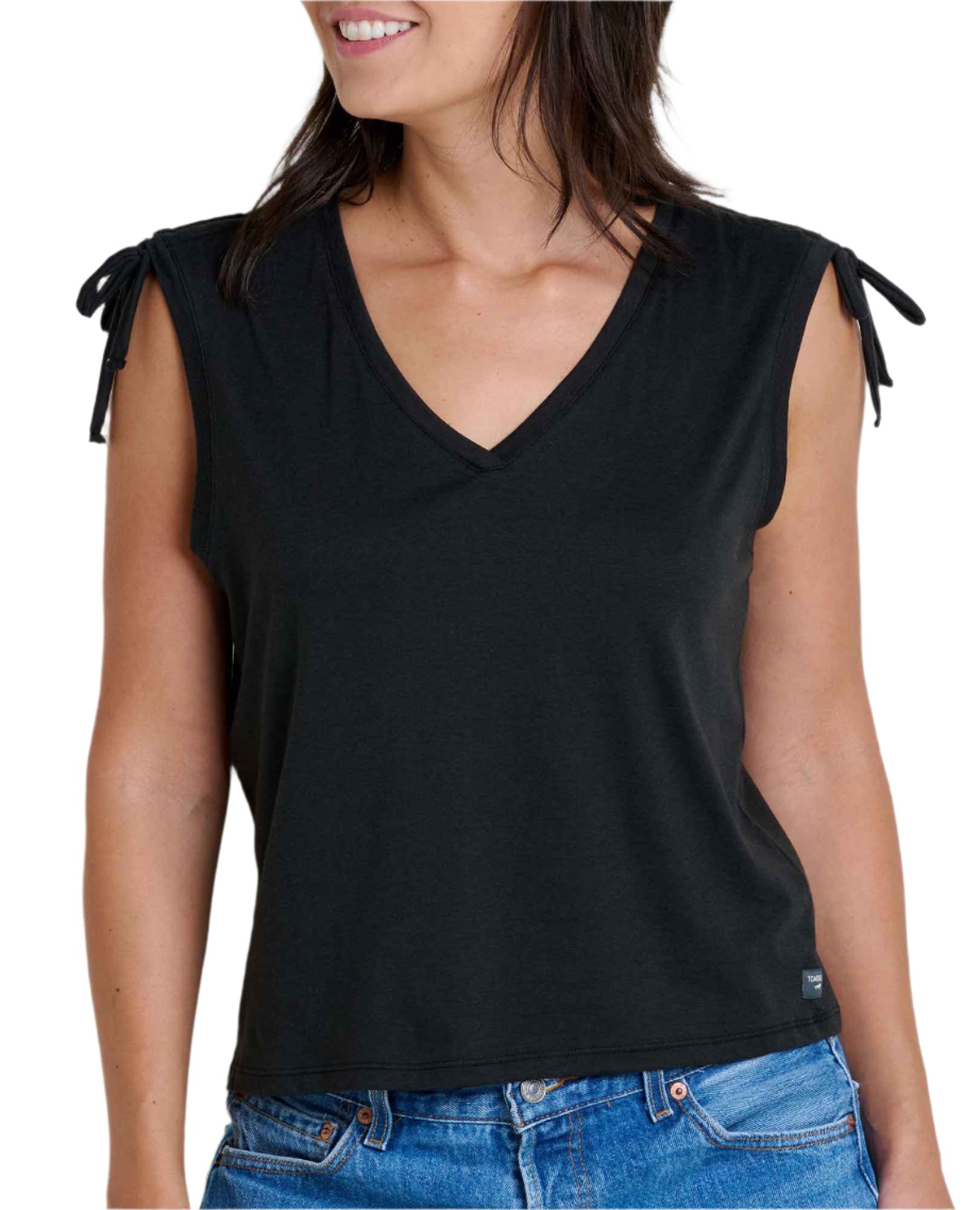 All the comfort and ease of our favorite t-shirt with a few sweet, fit-enhancing details. We love this lightweight top’s flattering straight hem and cinchable shoulder ties to switch from muscle tee to tank.