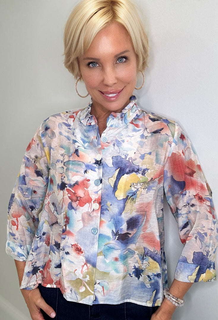 Meet your new favorite blouse. This enticing Spring and Summer favorite is ready to step out on the town with you. Flattering styling with a slightly boxy cut gives this top a twist of vintage appeal. Lightweight fabric provides coverage but yet makes this perfect for even the warmest of days.