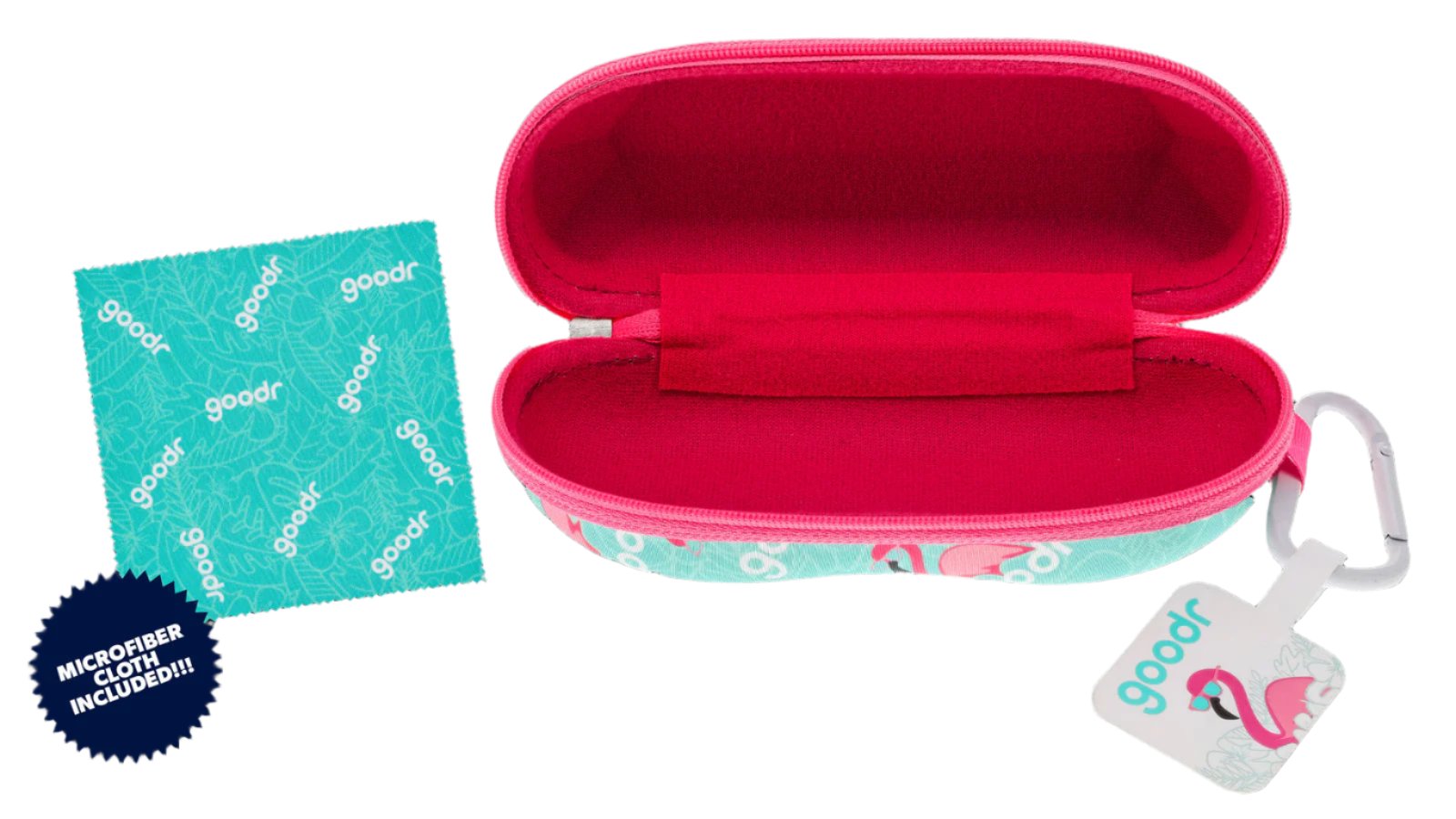 Keep your goodrs safe and sound with our Best Case Scenario, a zipper-enclosed sunglasses case with a snuggly soft inside lining to keep your shades cozy and protected. Adorned with pink flamingos on a teal tropical background, this case is as stylish as the sunnies inside.