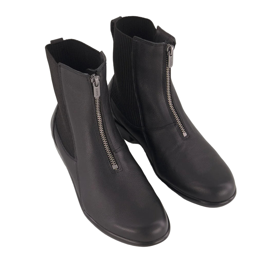 Transform your wardrobe with the Bora Boot, a blend of contemporary style and practical design. This boot features a streamlined silhouette enhanced by a front zipper and stretchy panels for a customized, flexible fit. The 1.5" polyurethane sole adds both resilience and a modern touch, while the removable cork and latex footbed delivers superior comfort throughout the day. Ideal for every occasion, the Bora Boot offers effortless sophistication with every wear.