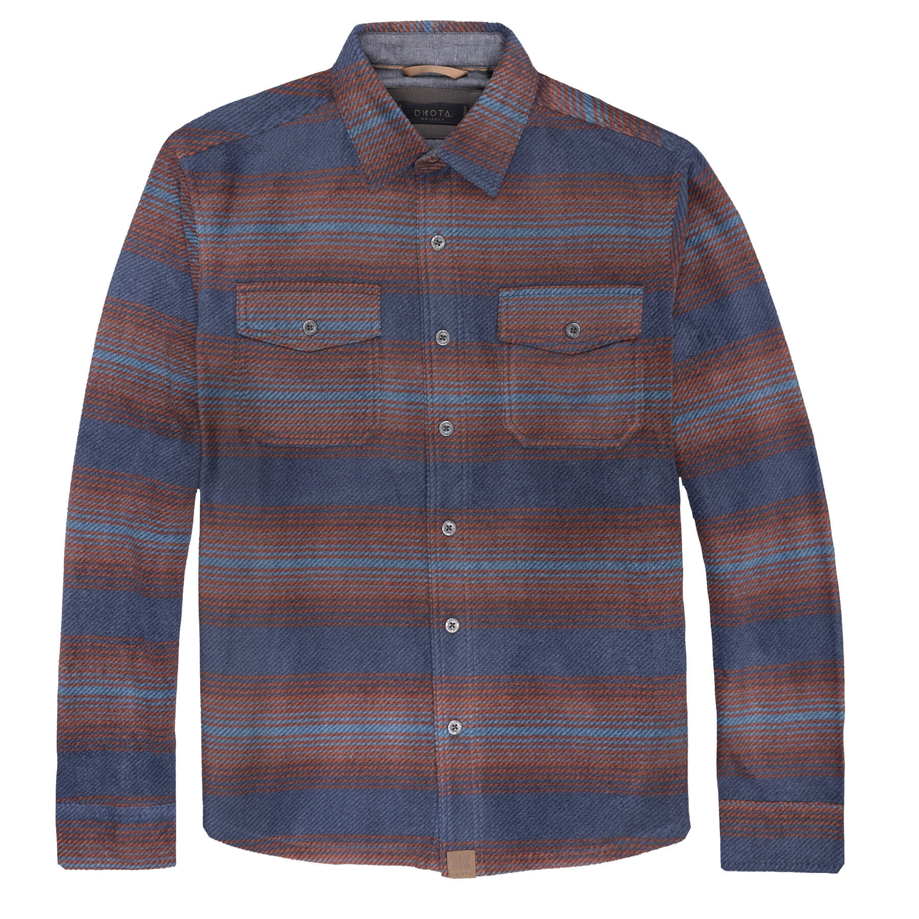 The button up BOWIE blanket shirt returns in a panoramic assortment of soft, heathered mountain stripes. The stretch-with-you comfort has made this Dkota original a nationwide, three-season favorite.
