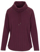 Women's long-sleeved top with a high neck, The top appears to be made of a soft, textured fabric with a quilted pattern. The overall style of the top is casual and comfortable.