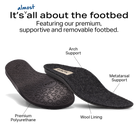 The slip on wool "convertible" called Convertawool, has a moc toe-like seam on the toe, and a seam on the heel, giving a distinct European look, with a collapsible back, turning this shoe into a clog, effortlessly! Italian wool, offering exceptional quality, is fabulous and features a removable footbed, arch & metatarsal support, covered in wool that is natural and breathable. The TR, cork blended outsole is extremely lightweight, flexible, and durable. Whether you wear it as a shoe, or collapse the back and wear it as a clog, you will love the versatility of Convertawool!