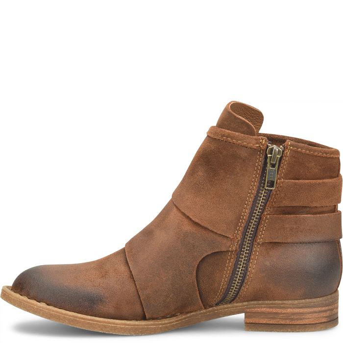 The suede uppers on our Moraga booties are expertly hand-burnished in all the right places. The wraparound straps complete the look.