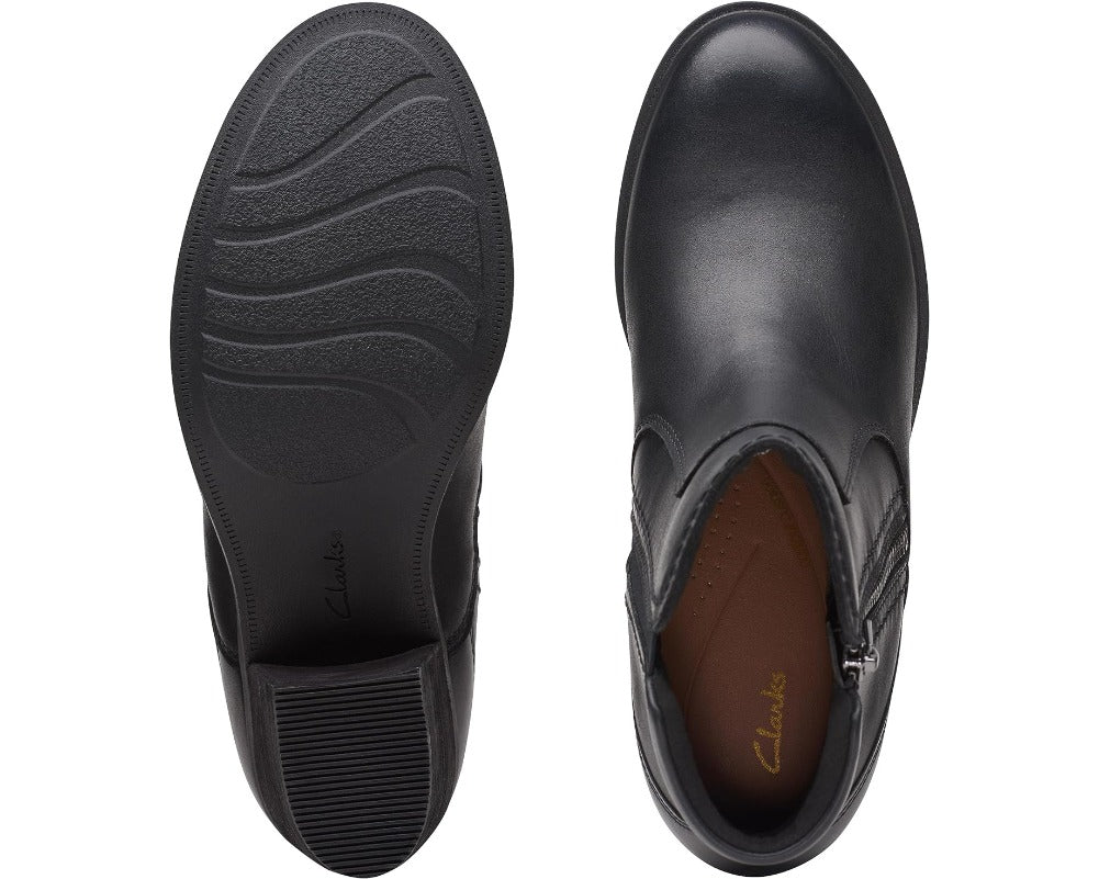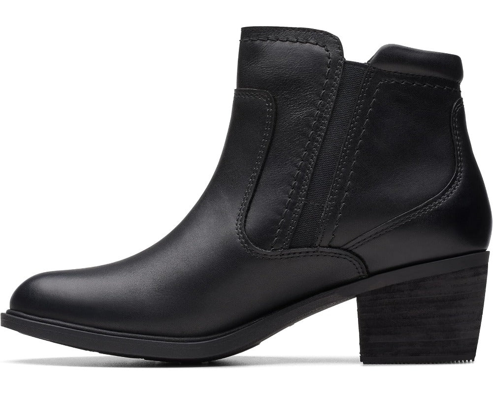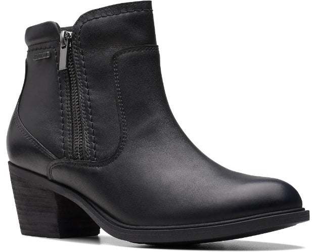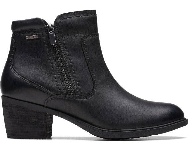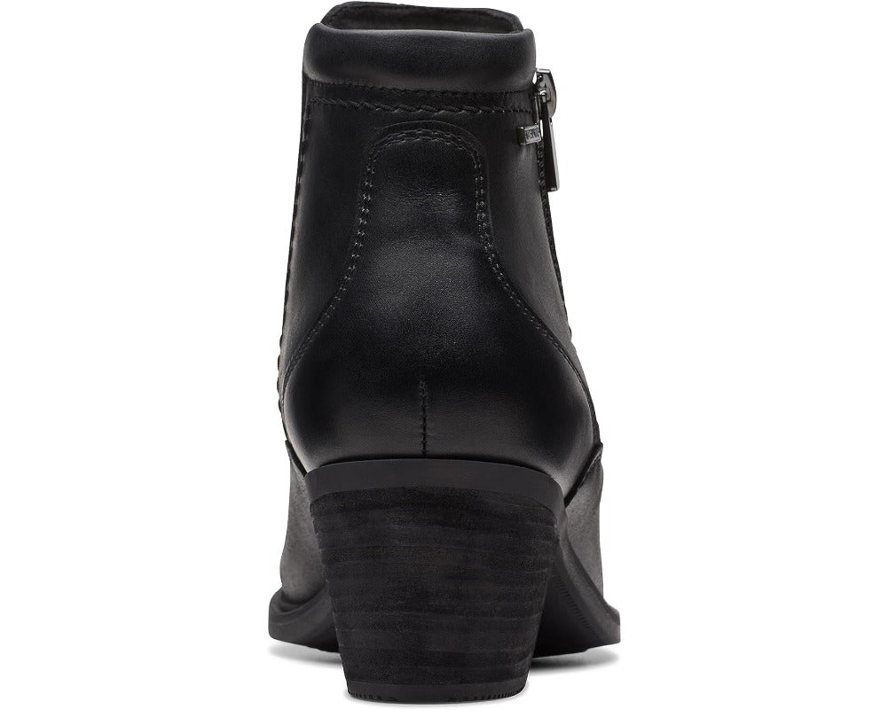 Upgrade your footwear collection by wearing the Clarks® Neva Zip Waterproof boots. The pull-on style waterproof boots have a plain round-toe design with western heels. The ankle-high boots have a leather upper with foam insole and fabric lining for maximum comfort.