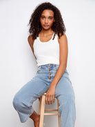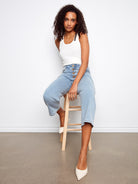 Charlie B light blue cropped jeans offer an effortless chic look. Designed with a button fly and a straight-leg cut, they're perfect for relaxing days. Just put them on, and you're ready to face the day feeling stylish and comfortable!