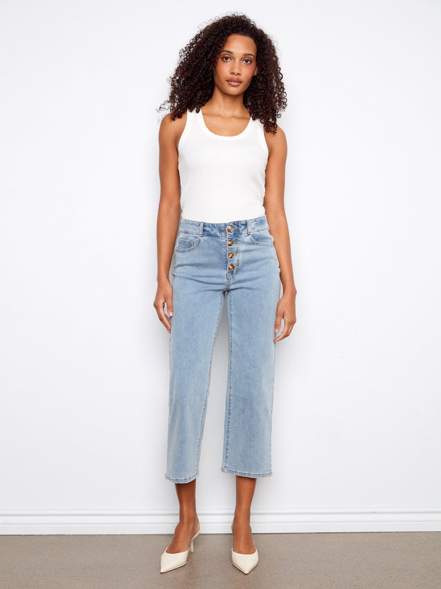 Front Button-Fly Crop Jeans - Light Blue - C5623R-431A