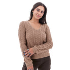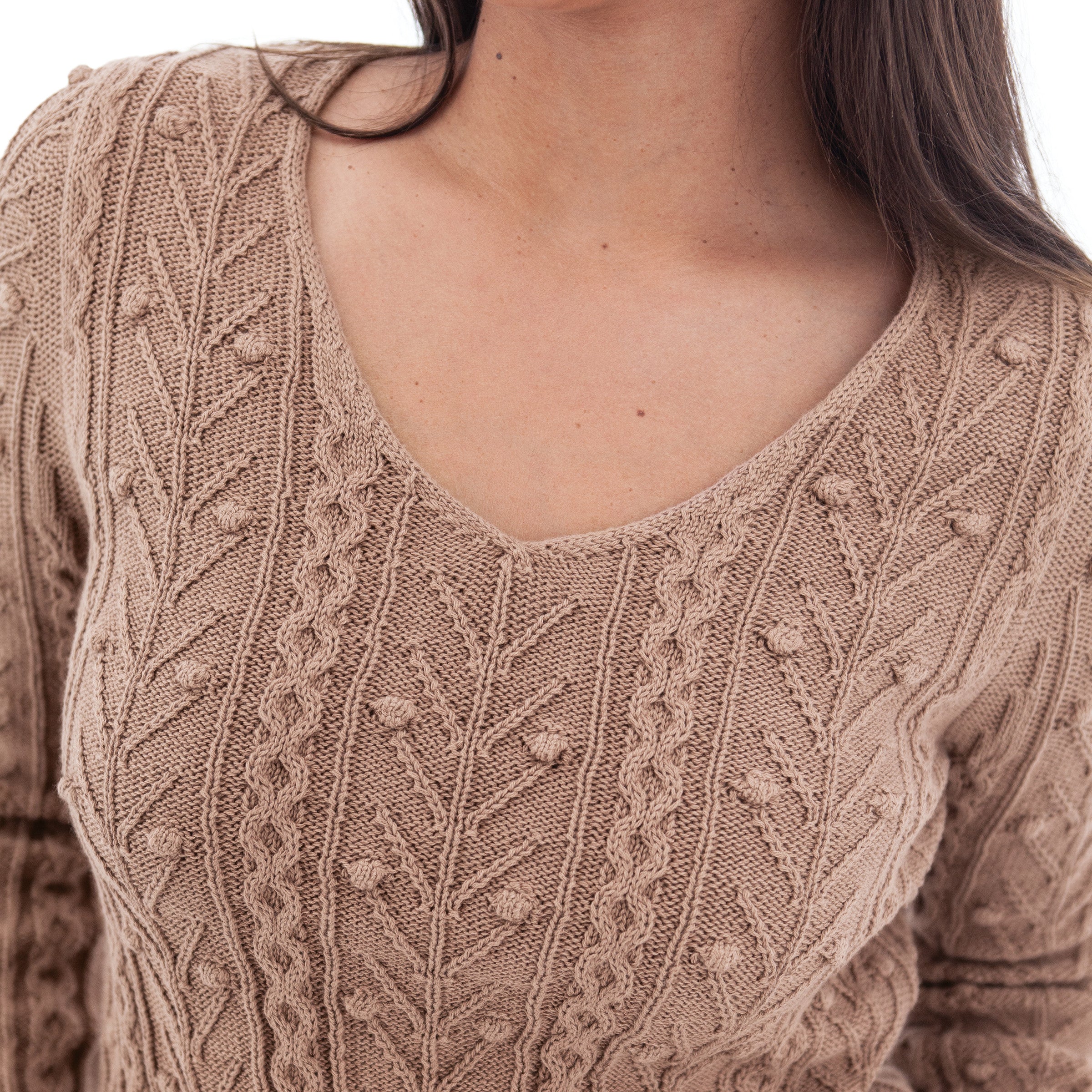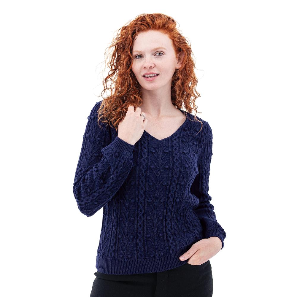 - V-neck sweater with bobble pointelle knit pattern