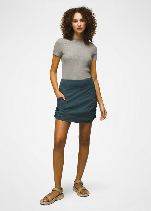 Part of PrAna bestselling Koen collection, that's known for the ultra-comfortable knit waistband, this lightweight skort is ready for active days with you. For when you're on the go, the undershort has stash pockets for your keys and card. It's ready to keep you sun-safe too with UPF 50+ protection.