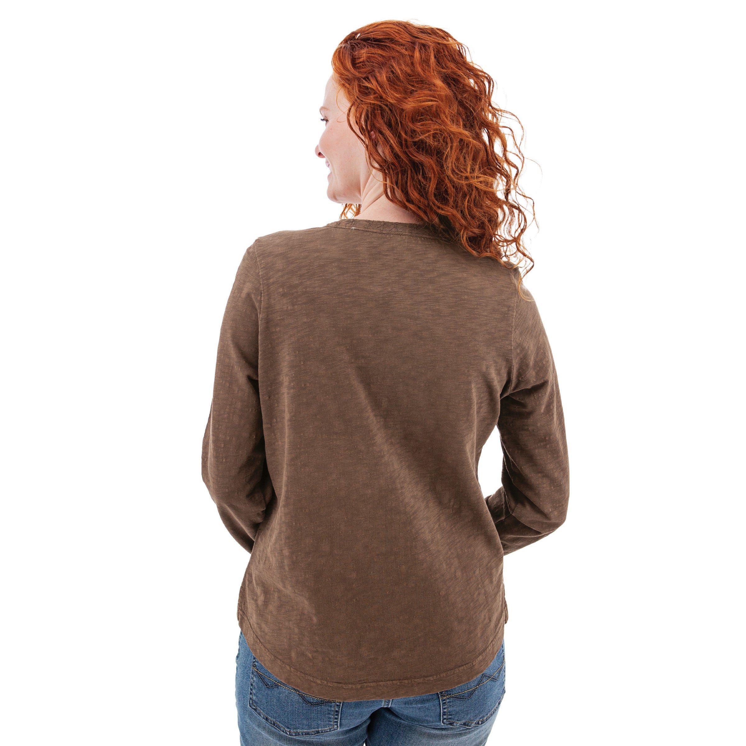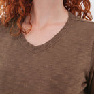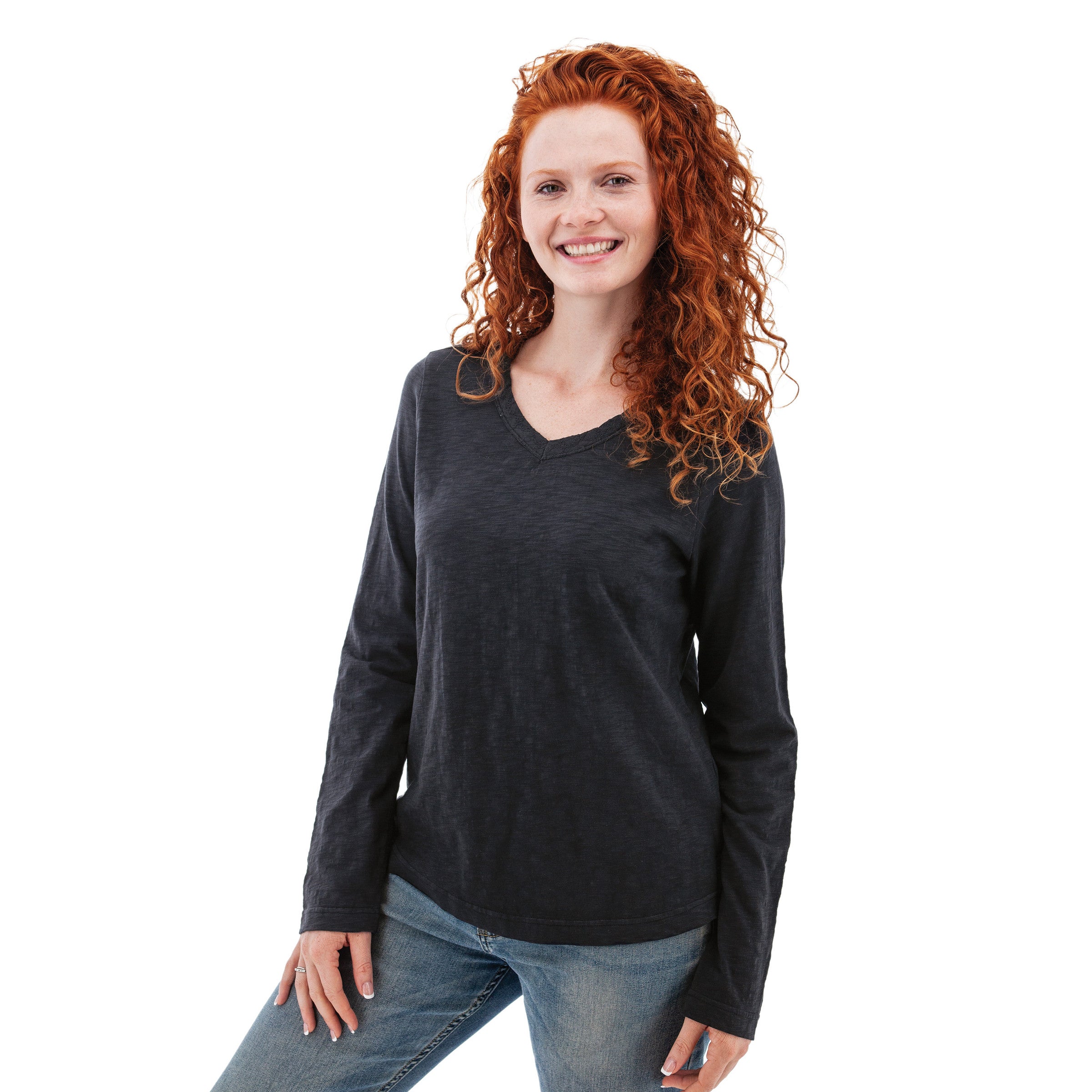 The Layla Organic V-Neck Top is the updated version of an Old Ranch Brands classic, the Bryce V-Neck Top. Customers loved the soft cotton, flattering fit, and embroidery detail along the neck of the Bryce but we're sure you'll love our improvements even more! This top is still 100% cotton, but upgraded to the more environmentally-friendly organic cotton. The fabric was also altered to be a slub jersey which has enhanced softness, better handfeel, and a beautiful heathered appearance. Slub jersey has a great stretch to it without the use of synthetic fibers like spandex. Finally, the Layla Organic V-Neck Top made an ethical upgrade; it is produced at a Fair Trade Factory™!