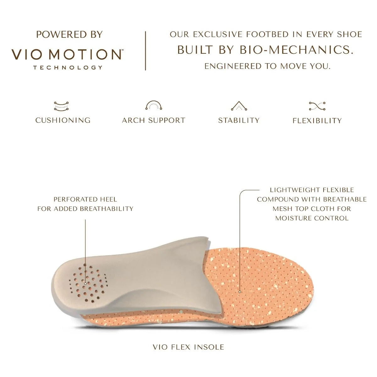 - Vio Flex insole: featuring a flexible, lightweight compound offering optimal moisture control including a perforated heel for added breathability.