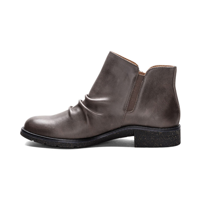 Introducing the effortlessly stylish Mila boots, a must-have addition to your shoe closet. Made from weatherproof genuine leather, this ankle boot is ruched down the vamp, adding a touch of flair to your look. Designed with a convenient side zipper and stretchy gore, these boots provide optimal adjustability, ensuring a perfect every time. The Mila boots feature arch support, a removable insole, and complete underfoot support.