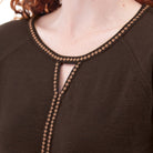 - Embroidery details on neck trim, cuffs & v-notch extending down center front