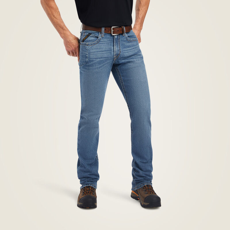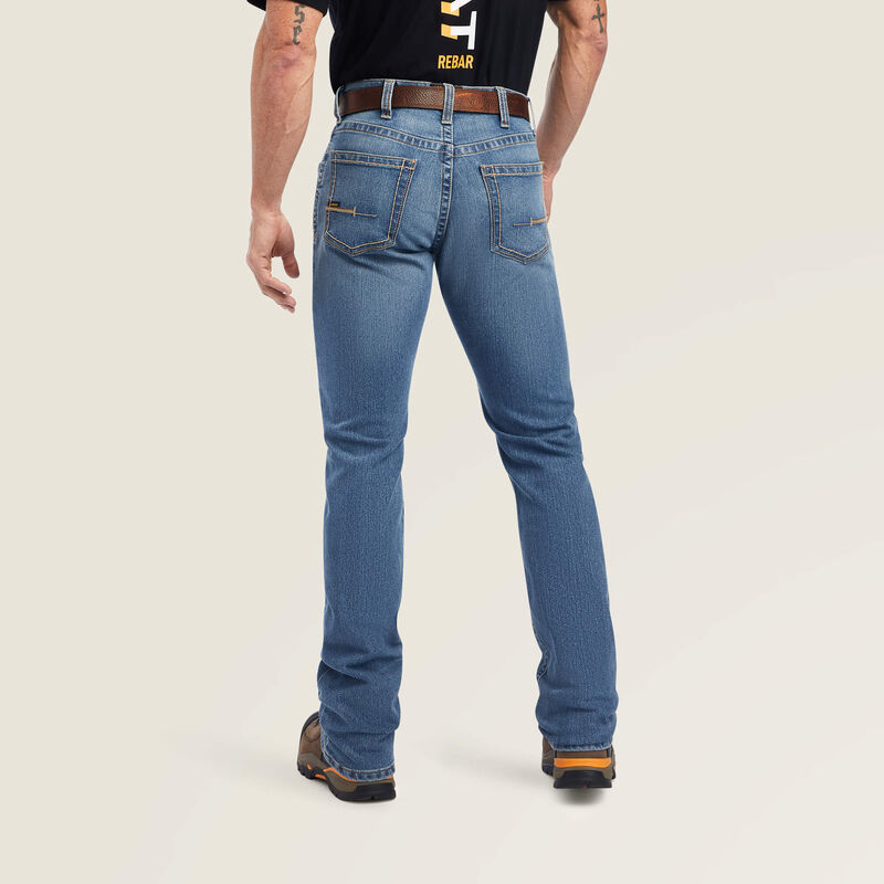 Ariat Rebar M4 Low Rise DuraStretch Edge Boot Cut Jean a modern take on a classic style. Comfortable and durable, our boot-cut M4 is relaxed through the hip and thigh for a fit that looks good on everyone.