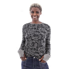 - Rib knit trim at neck and cuffs